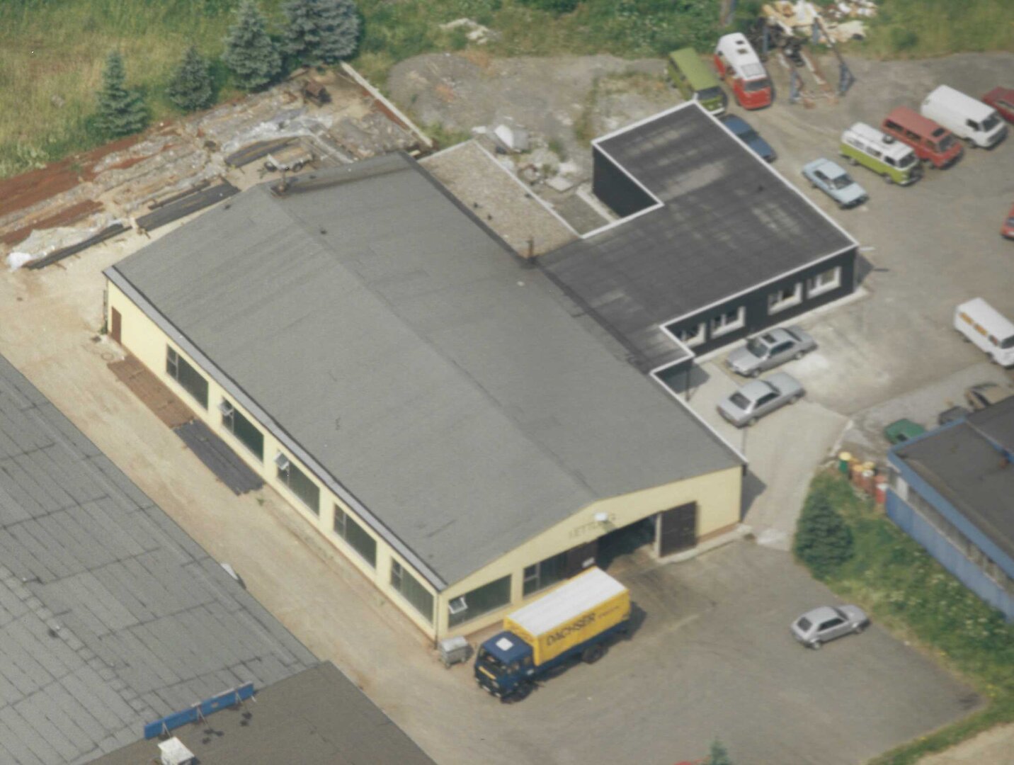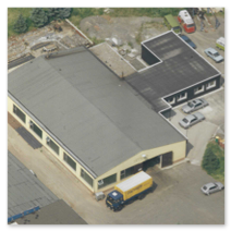 The production hall is purchased and an office wing is built next to it.